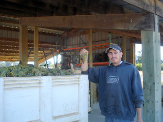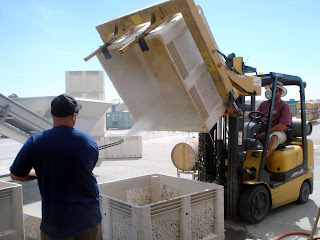 When I arrived at 8:30 a.m., Federico showed me 11 half-ton full plastic Macrobins, indicating they were about half done pulling in the target of 11 tons for the day.