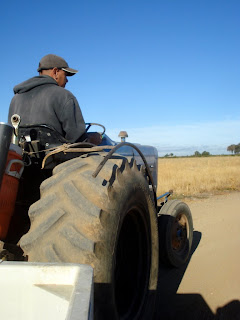 I crouched down inside an empty bin, riding in the tractor’s trailer as Federico took me on our bumpy way out between the vine rows to visit the hard-working crew.